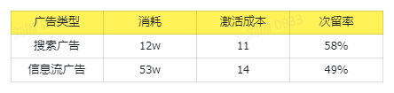 ● 定向:由于用户主动搜索相关信息,本身就属于高意向用户,因此不用再做过多定向限制,直接放开通投。而搜索广告经过一周的投放后,也带来了12w左右的消耗增长,同时它的次留率表现也要明显优于信息流: